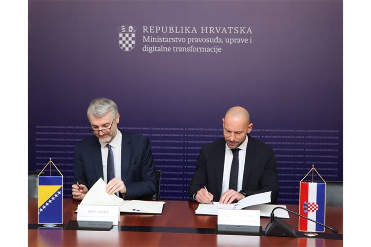 Ministar pravosuđa, uprave i digitalne transformacije Republike Hrvatske Damir Habijan i ministar komunikacija i prometa Bosne i Hercegovine Edin Forto potpisali su danas, 21. siječnja 2026. godine, Memorandum o suglasnosti između Vlade Republike Hrvatske i Vijeća ministara Bosne i Hercegovine o suradnji u područjima razvoja sigurne digitalne infrastrukture, razvoja javnih digitalnih usluga i digitalne transformacije.
